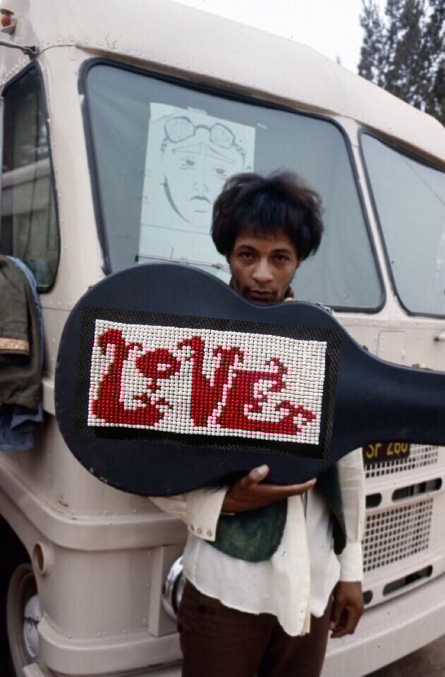 Hand beaded using size 11/0 glass Japanese seed beads. Red and cream white. Sewn onto black denim backing and treated with anti fray liquid. 2.5 X 4.5 inches. Hand wash recommended.