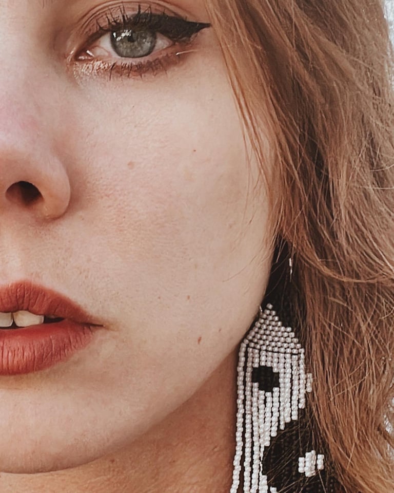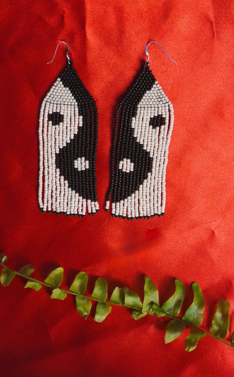 Hand fabricated earrings using glass seed beads. Sterling silver ear hooks.